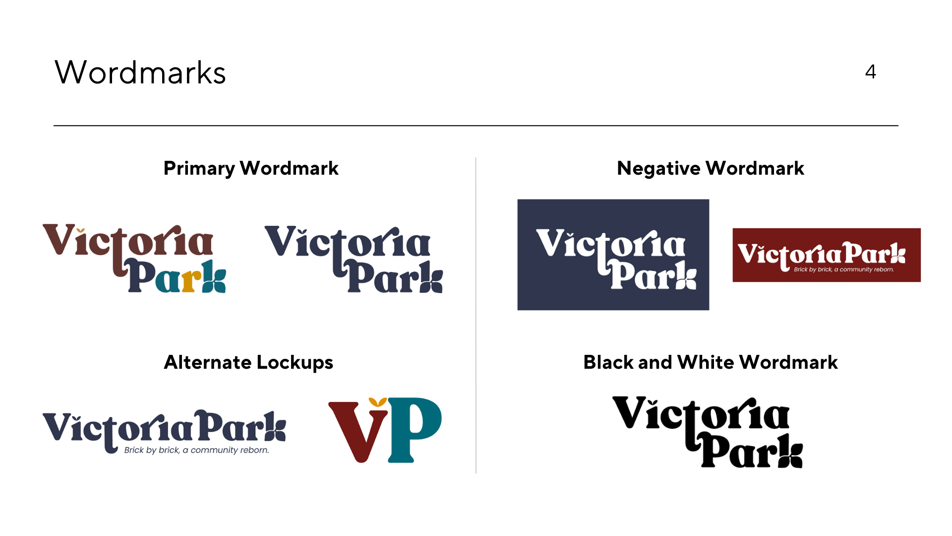 Wordmark: A bold, contemporary serif with exaggerated forms and varied letter widths, inspired by vintage signage and modular brickwork to reflect the neighbourhood’s layered personality and ongoing transformation.