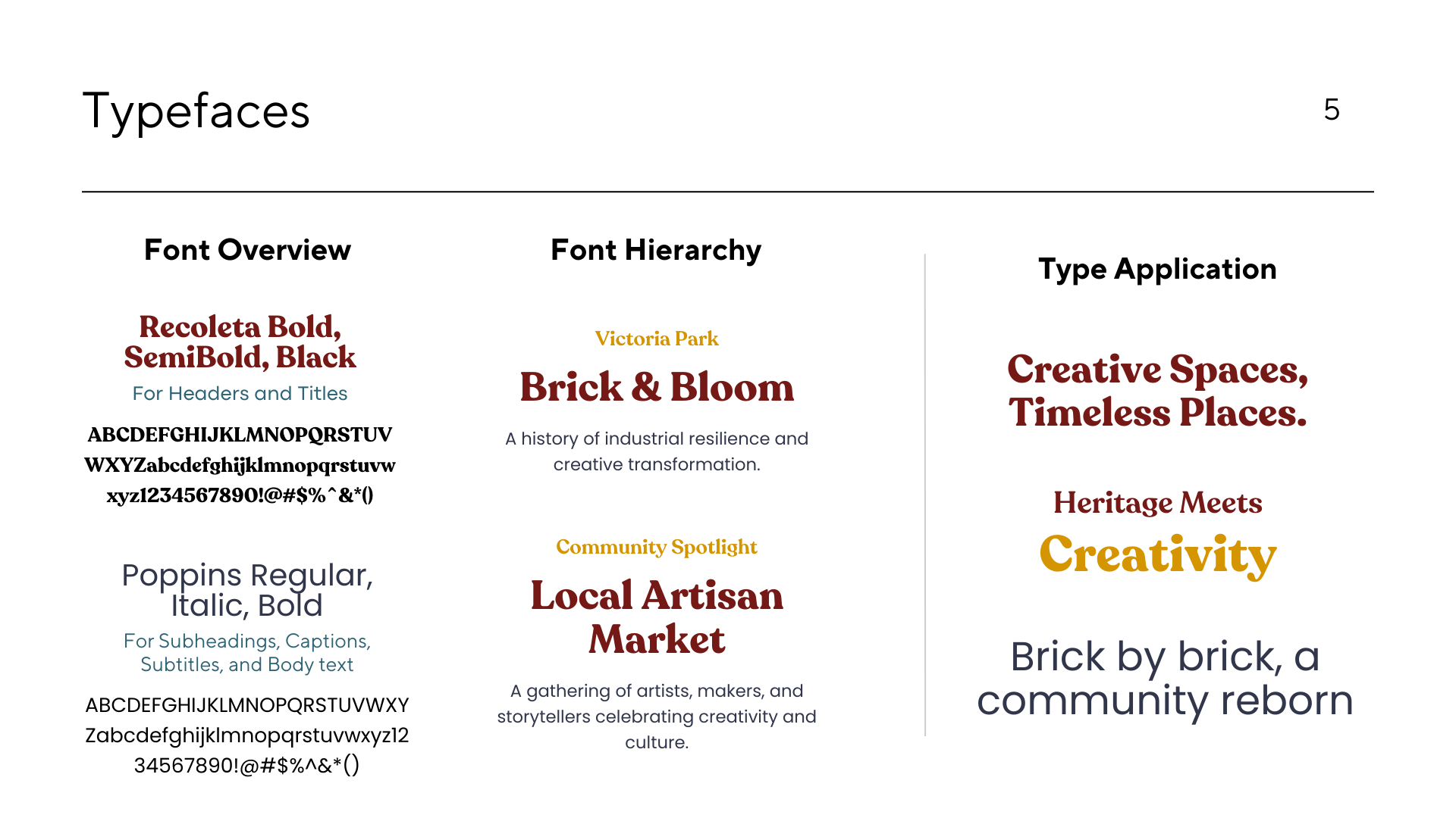 Typography: Recoleta and Poppins used to strike a balance between expressive character and clear communication