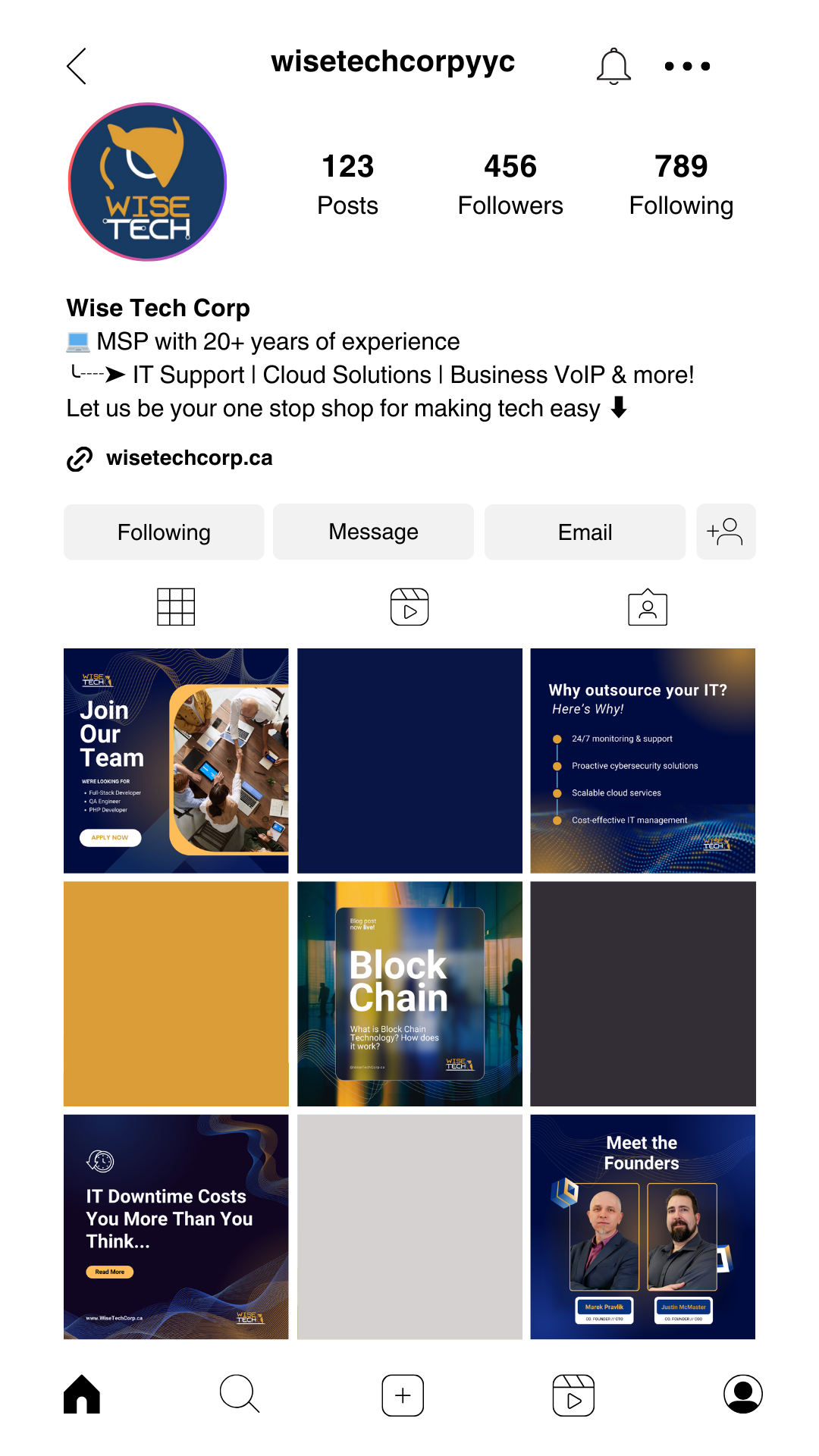 Wise Tech Corp, a Managed IT Service Provider, sought a refreshed brand identity and an enhanced digital presence following a merger to establish a new brand identity, strengthen client connections, and establish credibility in the competitive tech industry. The goal was to modernize their visual identity, website, and social media presence to reflect professionalism, trustworthiness, and forward-thinking innovation.